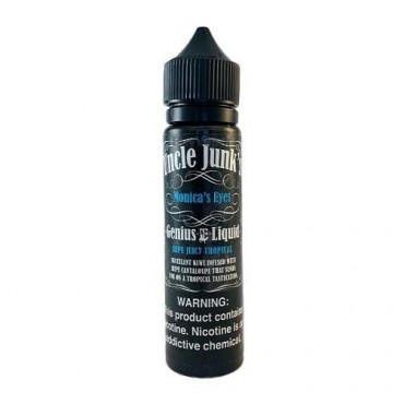 Monica's Eyes by Uncle Junk's Genius Juice comes in a 120ml glass dropper bottle. It's 70 percent vegetable glycerin (VG) and 30 percent propylene glycol (PG) base gives you big and fluffy vape clouds as well as a smooth solid hit to the throat.
